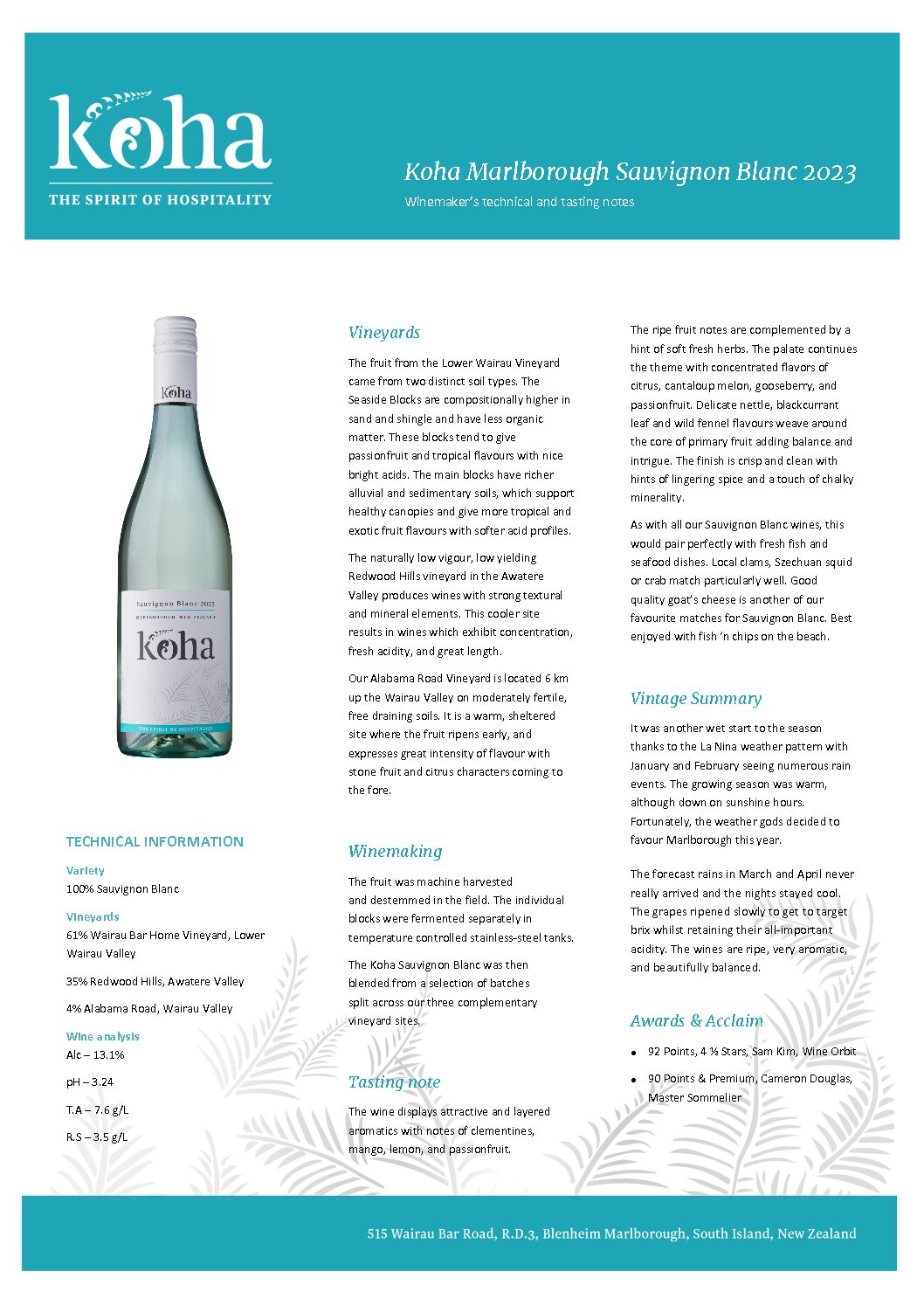 We are thrilled to have such a great producer join our portfolio – Please see the attached spec sheets, for both of the new Koha wines, from New Zealand